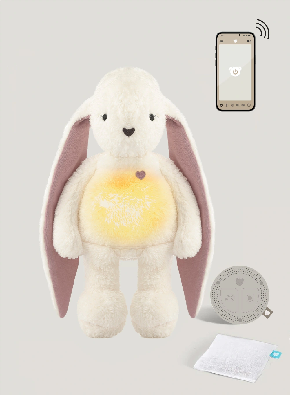 Le lapin propose trois sons apaisants : bruit blanc, bruit rose (liquide amniotique avec battements de cœur) et bruit brun (pluie), ainsi que 8 berceuses et 8 mélodies de Mozart qui aident votre enfant à se détendre et à s’endormir paisiblement. Le capteur de sommeil intégré active automatiquement les sons lorsque le bébé commence à bouger ou à se réveiller.