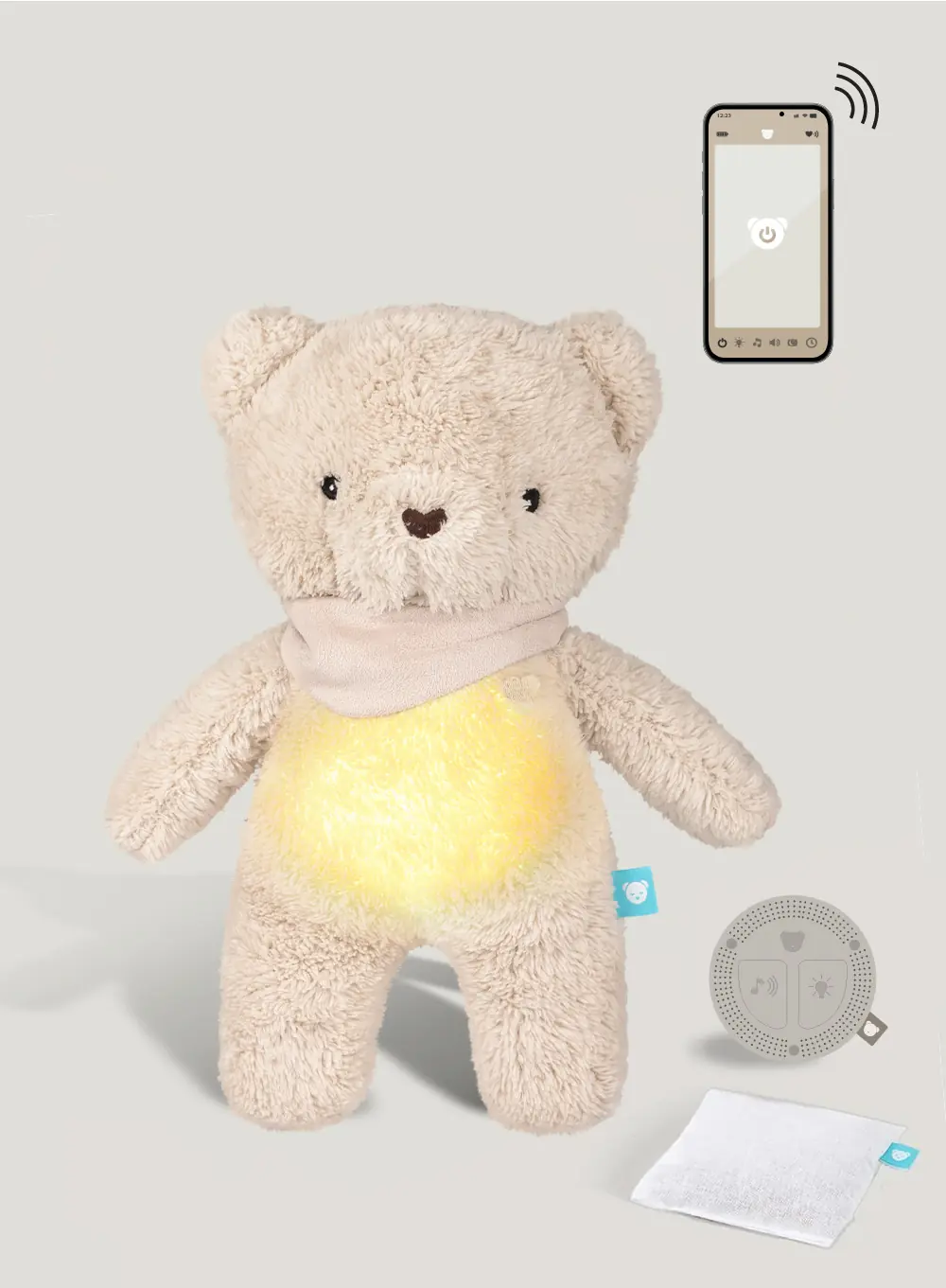 Découvrez le myHummy 7in1 avec application et coussin chauffant – l’ours beige, qui allie technologie moderne et douceur d’un doudou classique. Cet adorable ours aide les bébés à s’endormir plus facilement et à passer des nuits paisibles, tout en offrant aux parents des moments de détente et la tranquillité d’esprit.