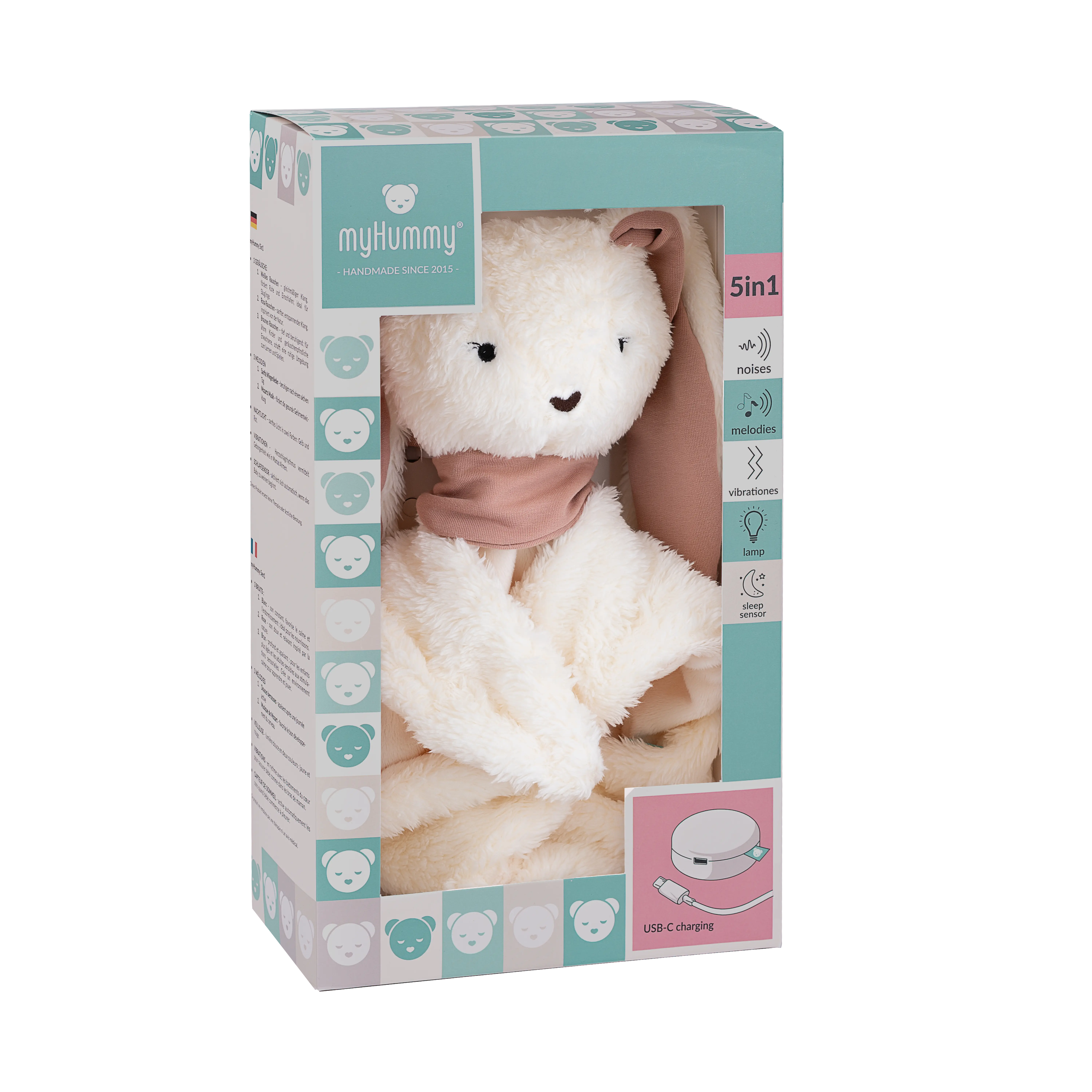 myHummy Doudou Lapin 5in1 : Sons avec Capteur de Sommeil, Lumière, Mélodies et Vibrations Apaisantes