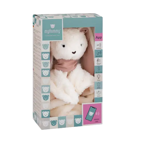 Le myHummy Lapin Dou Dou 7en1 avec veilleuse, application et couverture toute douce combine innovation et tendresse pour accompagner bébé dans un univers de calme et de bien-être.
