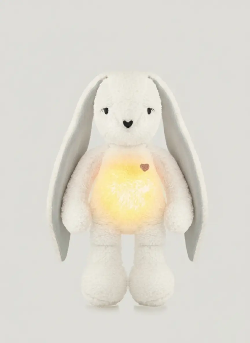 Le ventre du lapin myHummy peut être doucement éclairé par une lampe en deux couleurs chaudes : blanc ou rouge.