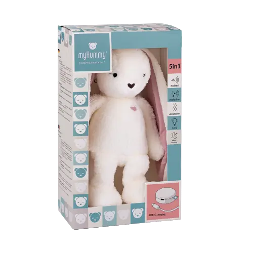 Les premiers mois avec un bébé sont intenses. Avoir un lapin en peluche avec bruit blanc et lampe comme myHummy permet de simplifier la routine du coucher. Il est prêt à fonctionner dès la naissance et continue d’être utile au fil des mois.