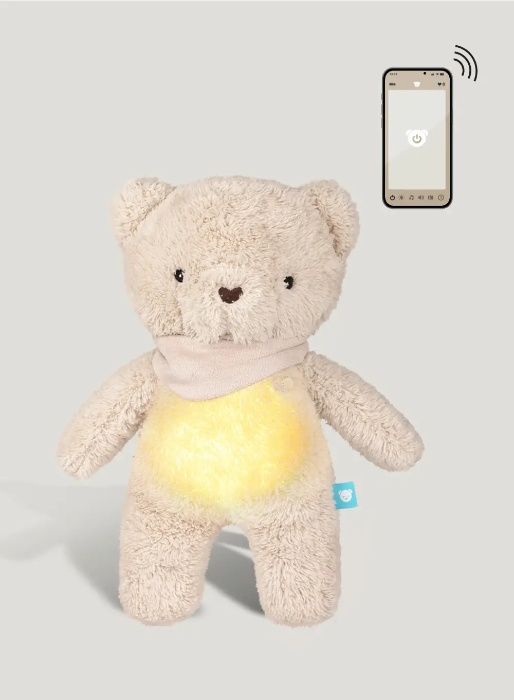 Peluche Ourson MyHummy 7-en-1 avec veilleuse et sons apaisants pour bébé. Offrez à votre bébé des nuits paisibles grâce à l’ourson myHummy : sons blancs, berceuses, veilleuse douce et vibrations au rythme du cœur.