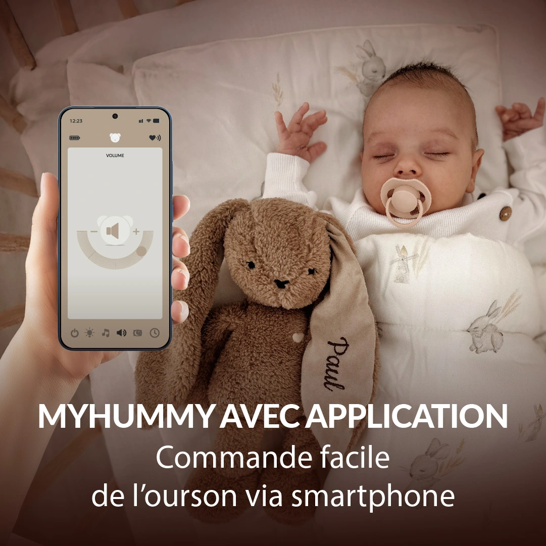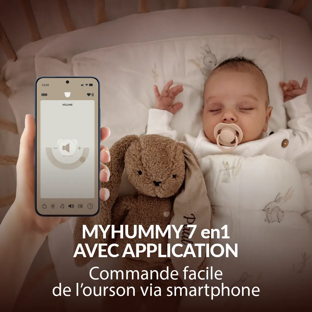 myHummy s’active automatiquement lorsque bébé pleure ou qu’un bruit apparaît dans l’environnement.